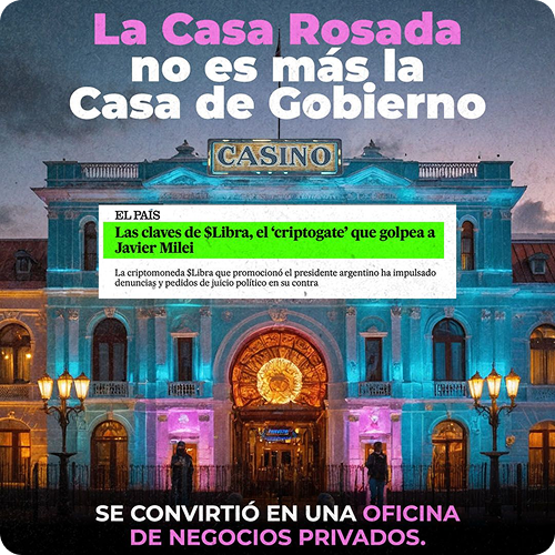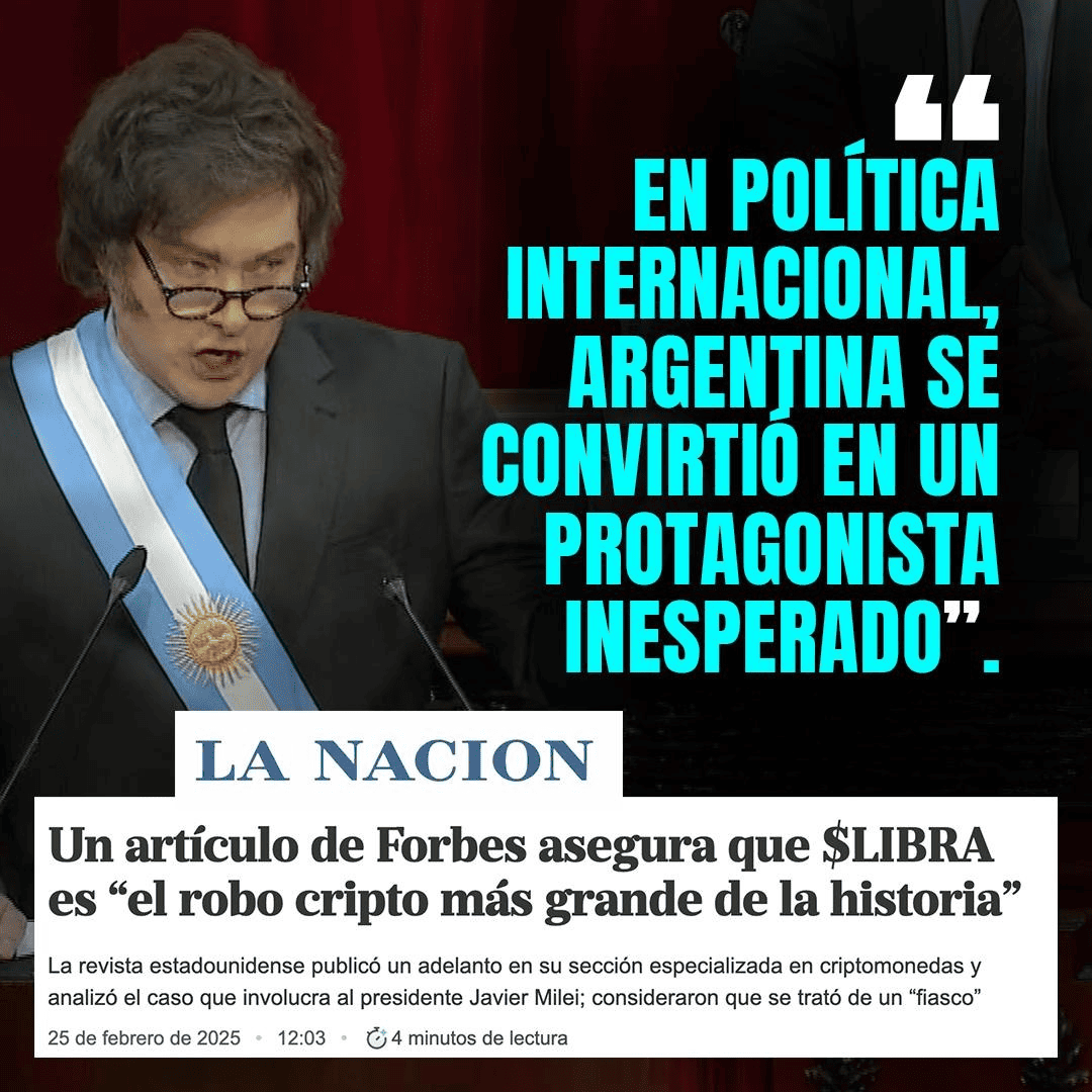 Mientras Argentina se hunde, Milei viaja sin parar: ocho viajes a EE. UU., cero visitas al interior y ninguna inversión lograda. Prometió acabar con la casta, pero rodea su gobierno de amigos involucrados en escándalos cripto. El caso $LIBRA es solo la punta del iceberg.